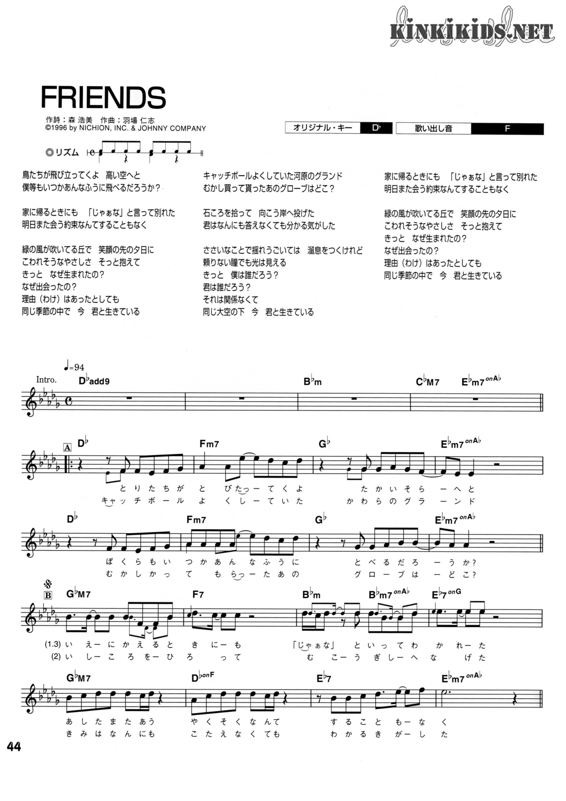 DOMOTO(元KinKi Kids)の楽譜ミュージックスコア