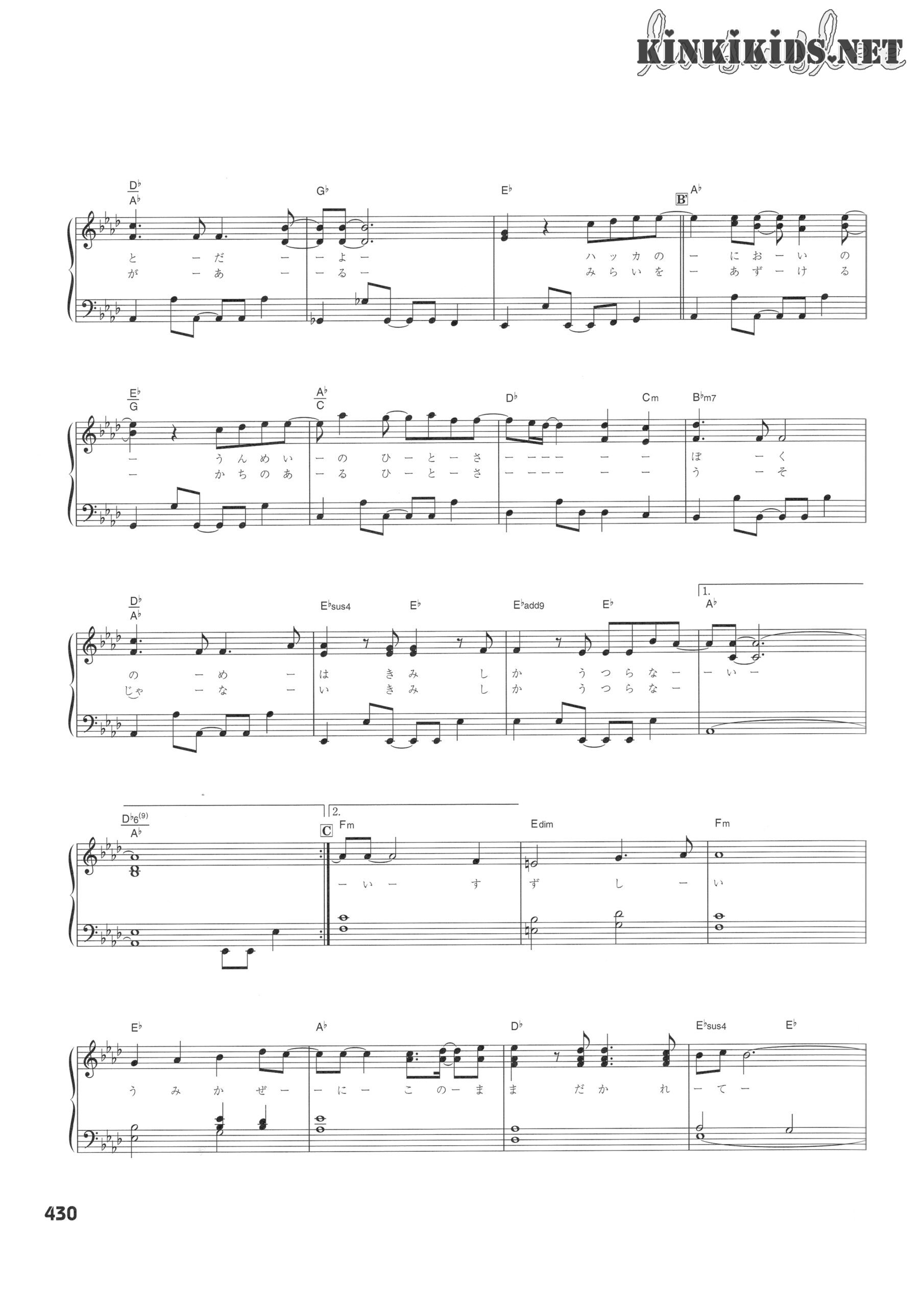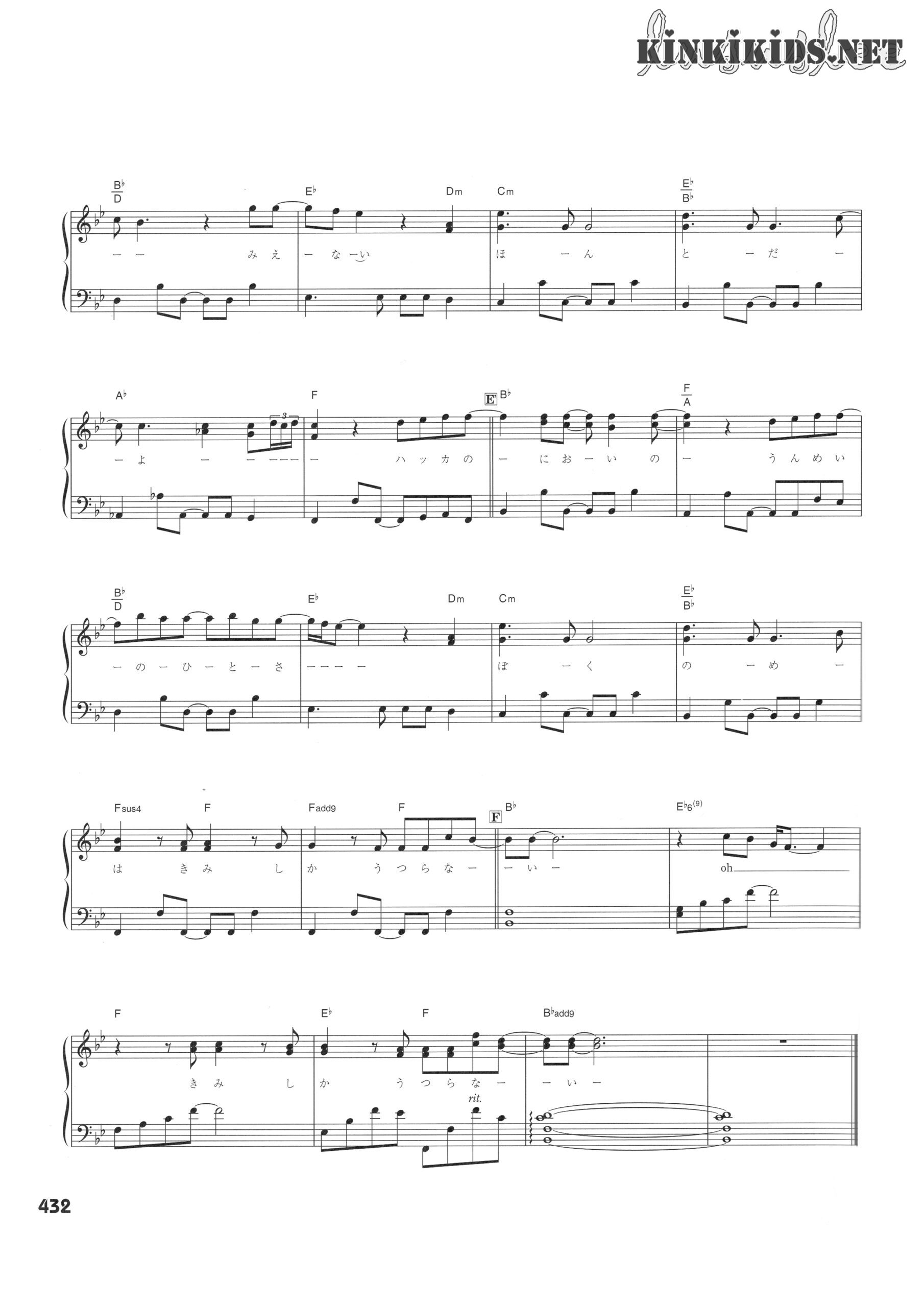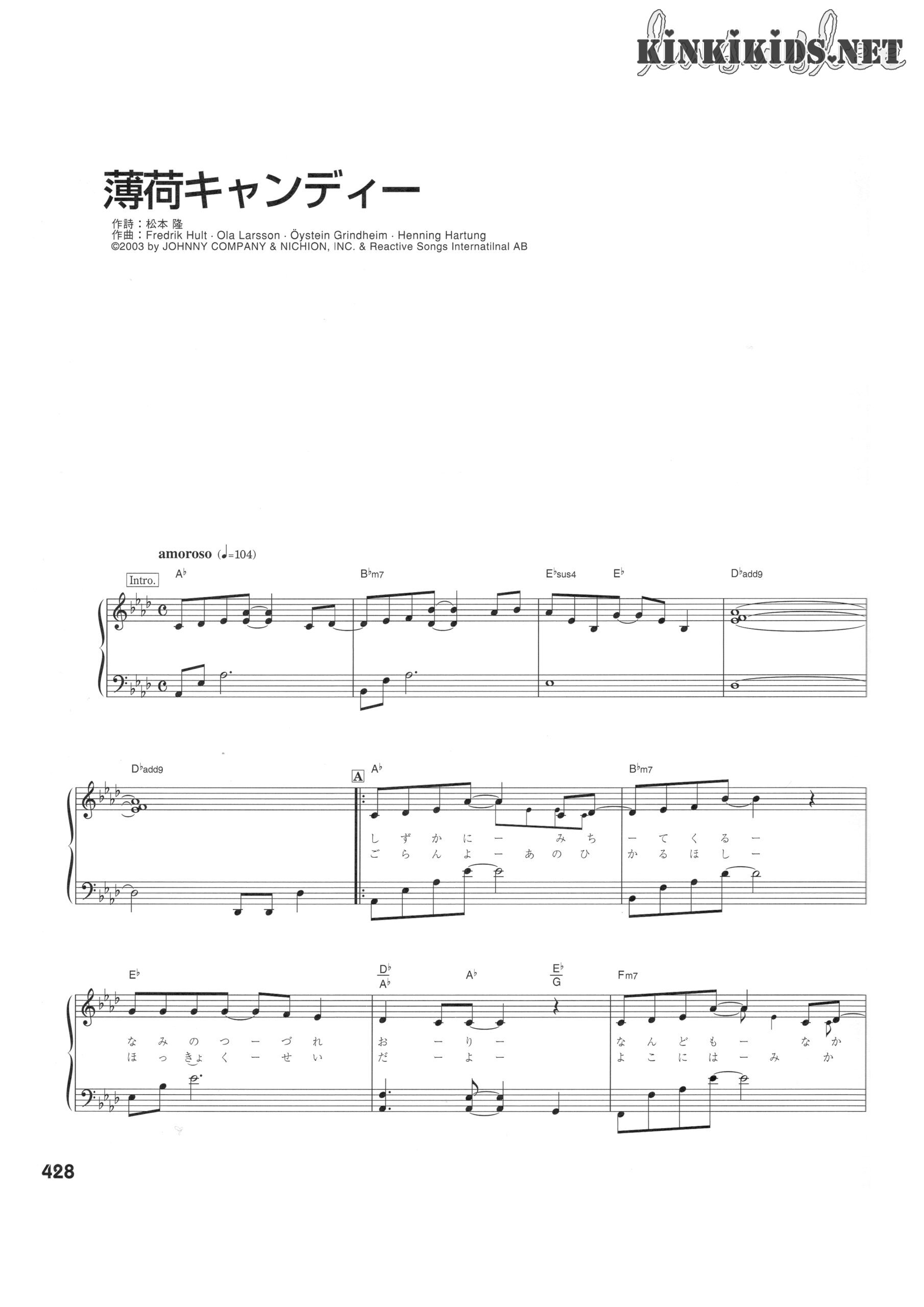 薄荷キャンディー Posted on 2022-03-142024-05-03 by lususlee 演唱:KinKi Kids 作詞:松本隆 作曲・編曲:Fredrik Hult, Ola Larsson, Öystein Grindheim, Henning Harturng コーラスアレンジ:三谷泰弘 刊载:KinKiの歌本 piano score 钢琴谱 堂本剛主演のTBS系日曜劇場『元カレ』主題歌。