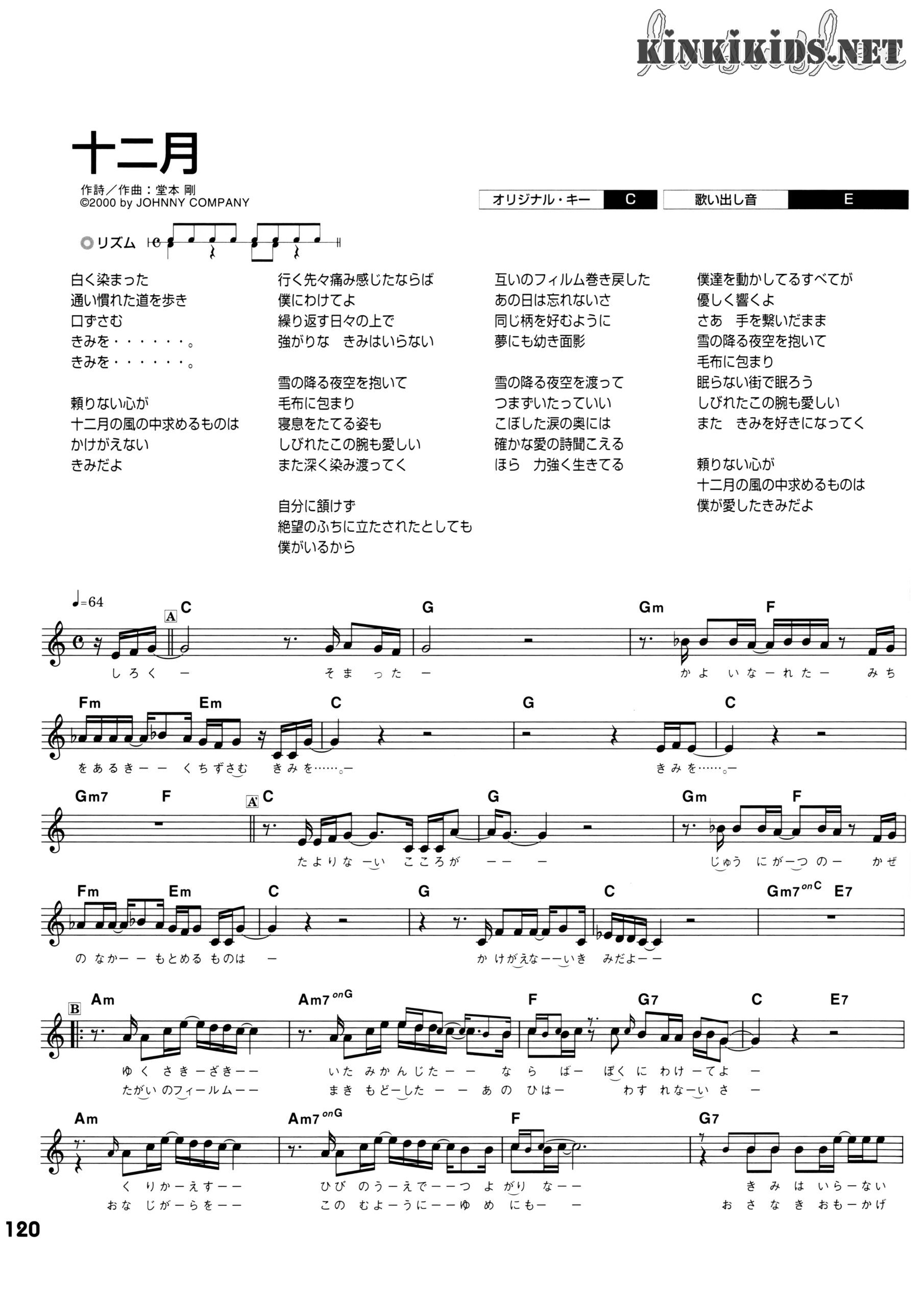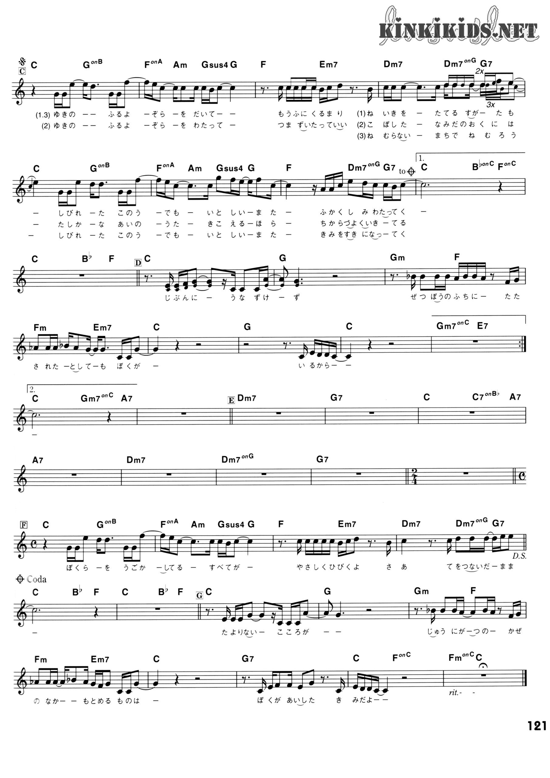 演唱・作詞・作曲:堂本剛 編曲:新川博 刊载:KinKiの歌本 歌谱