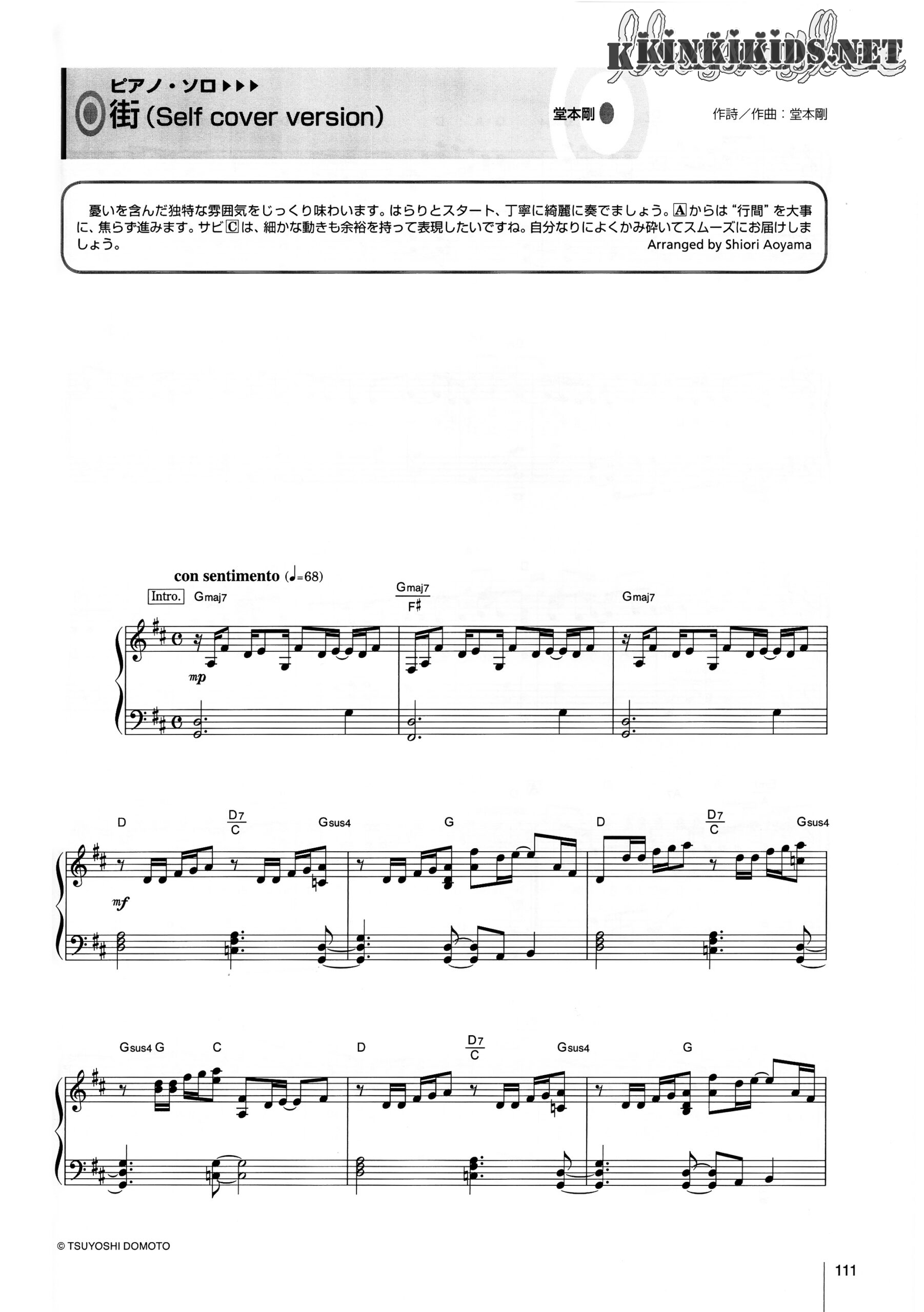 街(Self cover version) Posted on 2021-08-162024-05-03 by lususlee 演唱·作诗·作曲:堂本剛 刊载:Songs(月刊ソングス)2018.11 Vol.191 ピアノ・ソロ(钢琴独奏谱) 『カバ』通常盤 自身の1stシングルのセルフカバー。