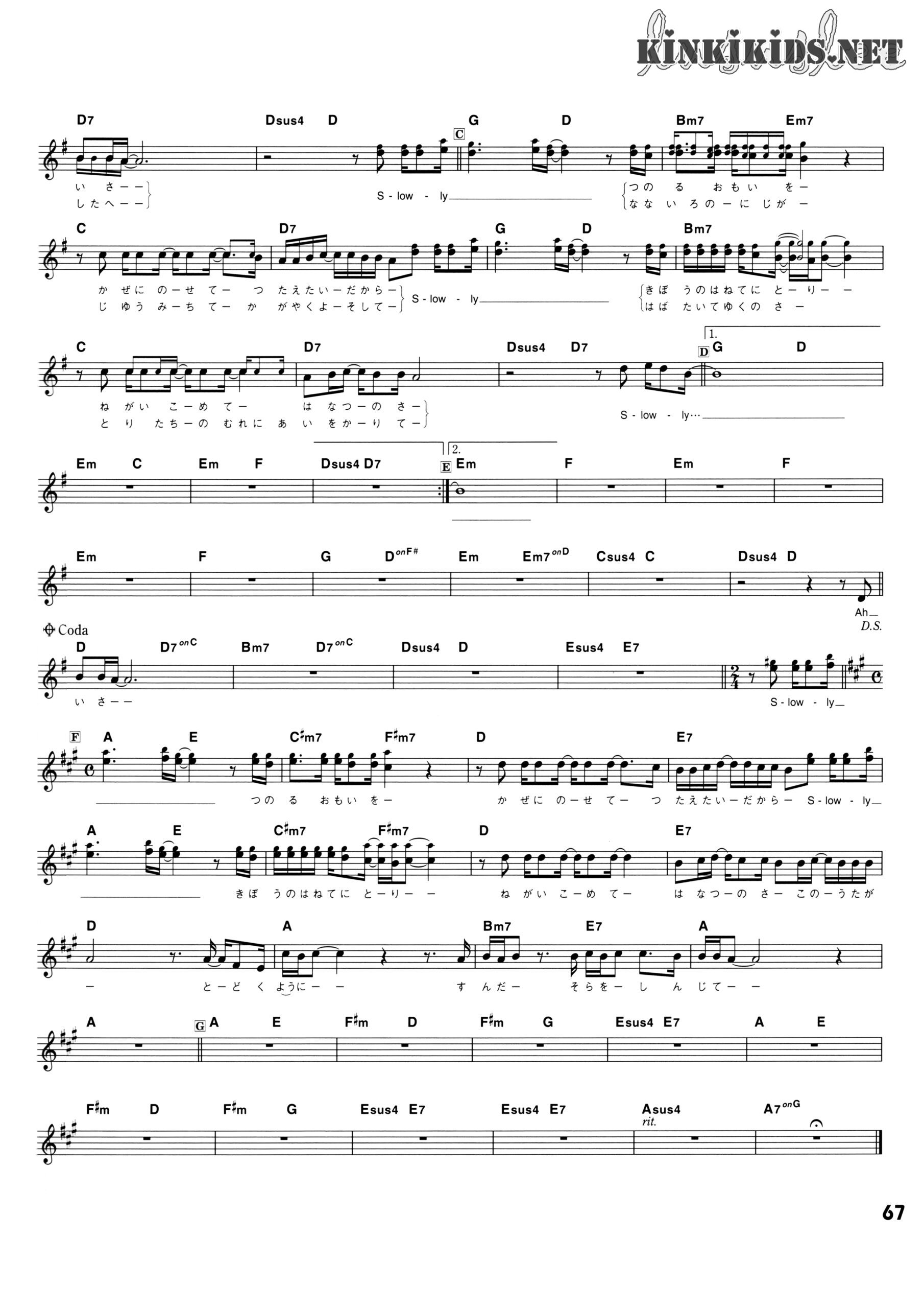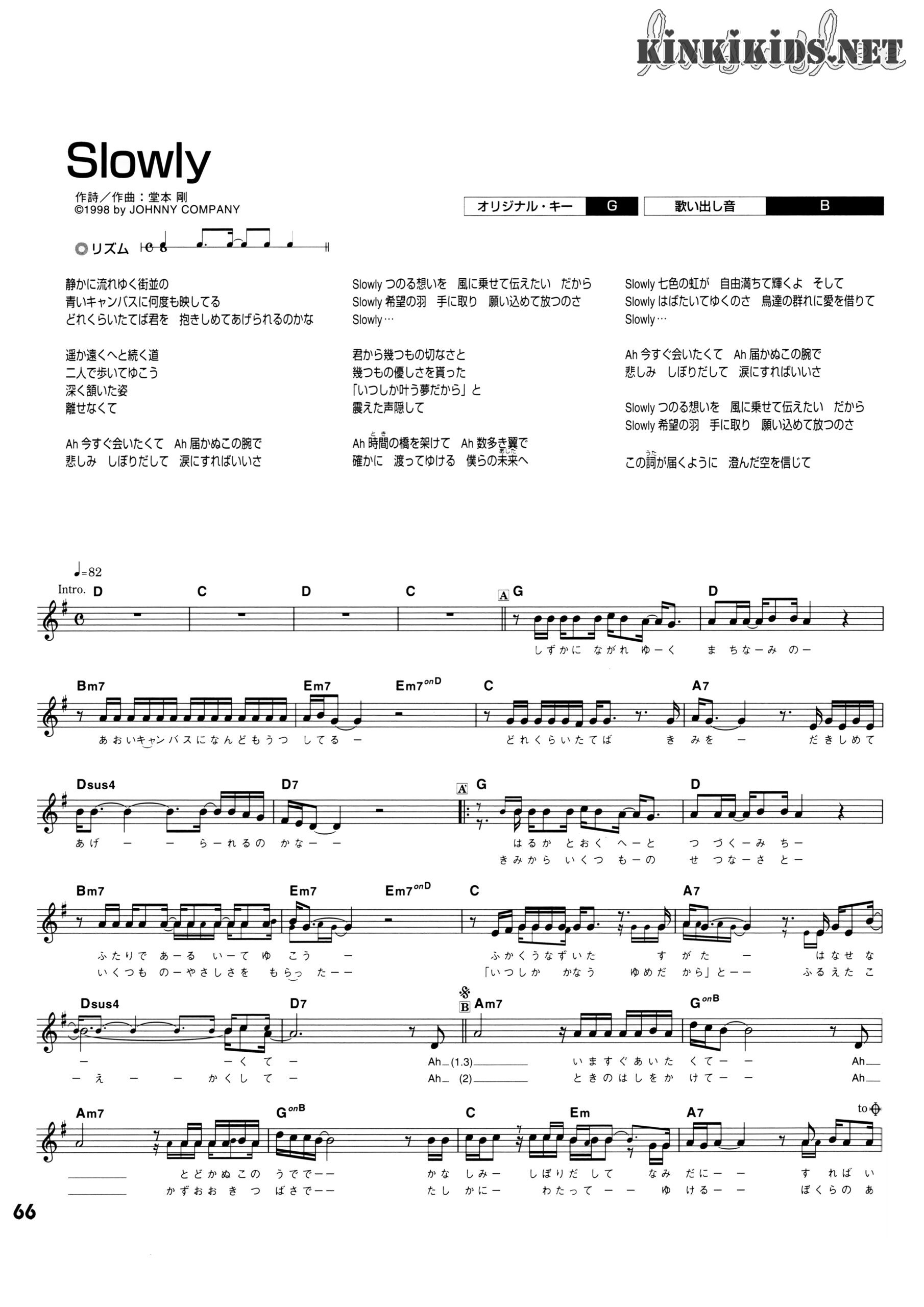 演唱・作詞・作曲:堂本剛 編曲:重実徹 刊载:KinKiの歌本,歌谱
